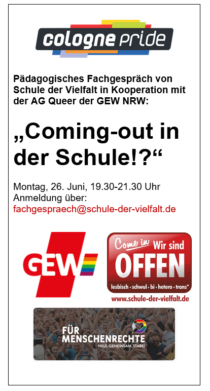Auf dieser Homepage finden sich Materialen für Unterricht und Projekttage und weitere Vorschläge, wie Schulen sich für die Akzeptanz unterschiedlicher Lebensweisen einsetzen können.